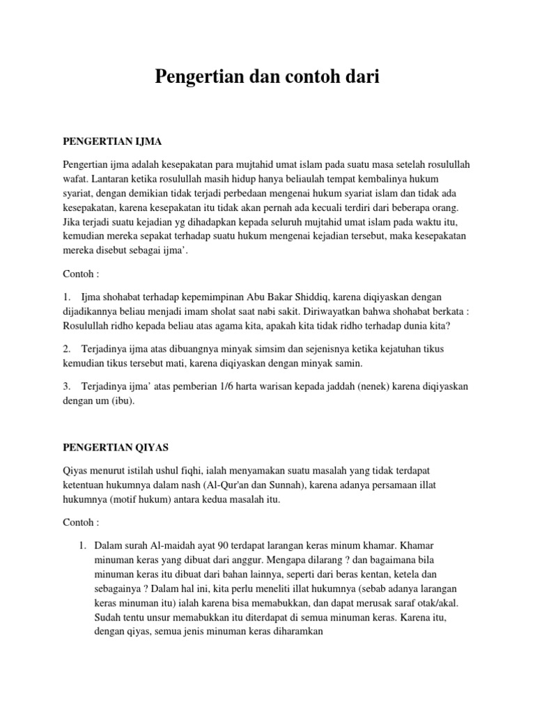 Pengertian Dan Contoh Dari Ijma Qiyas Dll Pdf